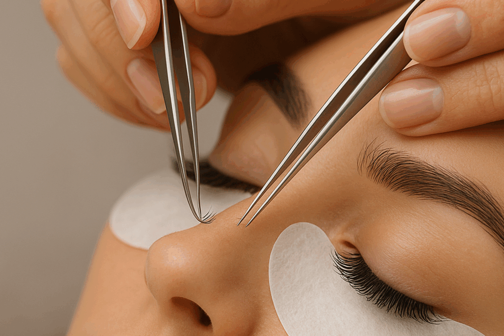 Un curs de bază include partea teoretică (anatomia genelor, igienă, contraindicații, materiale, adezivi), demonstrații, practică supravegheată pe model real, suport de curs, diplomă de participare, asistență post-curs și adesea reduceri la produsele profesionale.